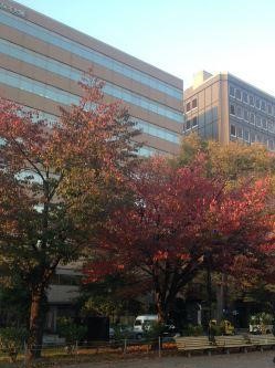 札幌の大通公園のカエデや桜などの広葉樹がすでに紅葉していました。