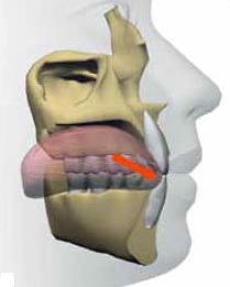 ところが舌小帯が短かったりして舌の挙上が常時妨げられている場合、舌はほとんど動かないために下アゴの歯列内に収まったままの状態で、歯の痕がつくだけでなく舌本来の機能をほとんど果たしていません。