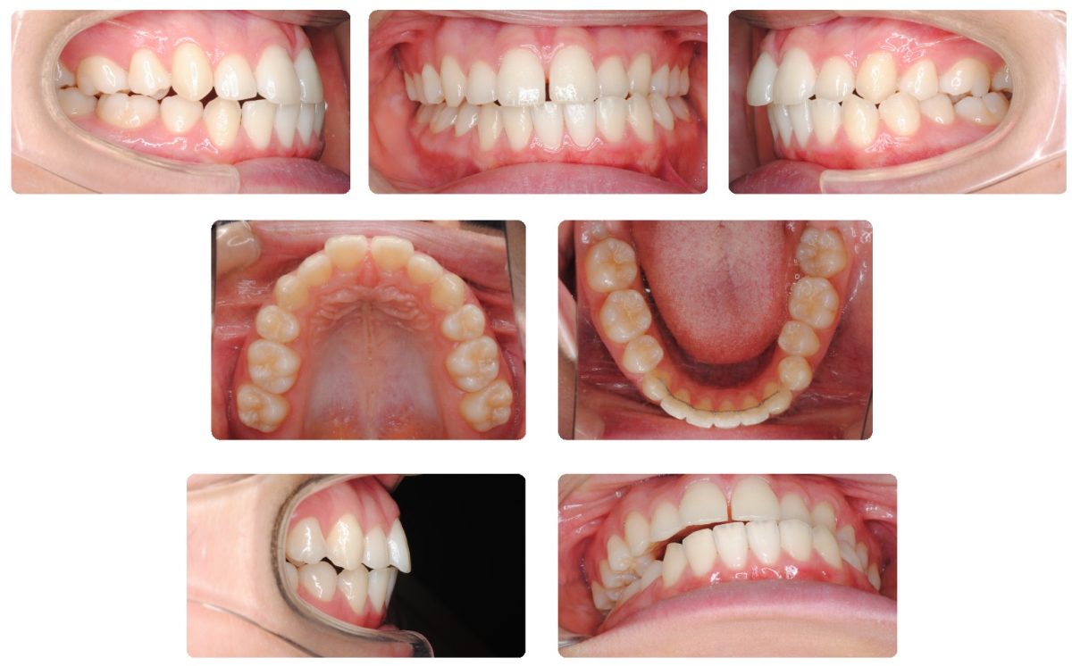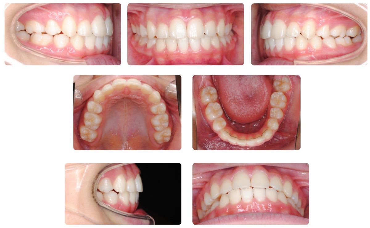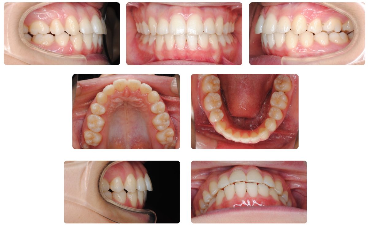 当院での保定期間が終了して最終来院時から4年が経過した時点で来院されました。もともと下顎の左側偏位が顕著な症例だったのですが永久歯列で小臼歯抜歯にて動的治療を終了しております。下記の写真は最初の保定開始時点です。