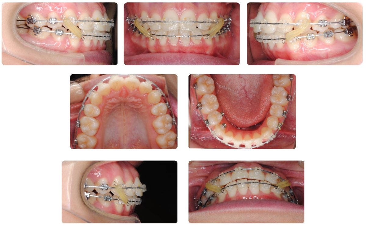 再治療開始時です。上下顎に再度マルチブラケット装置を装着しました。