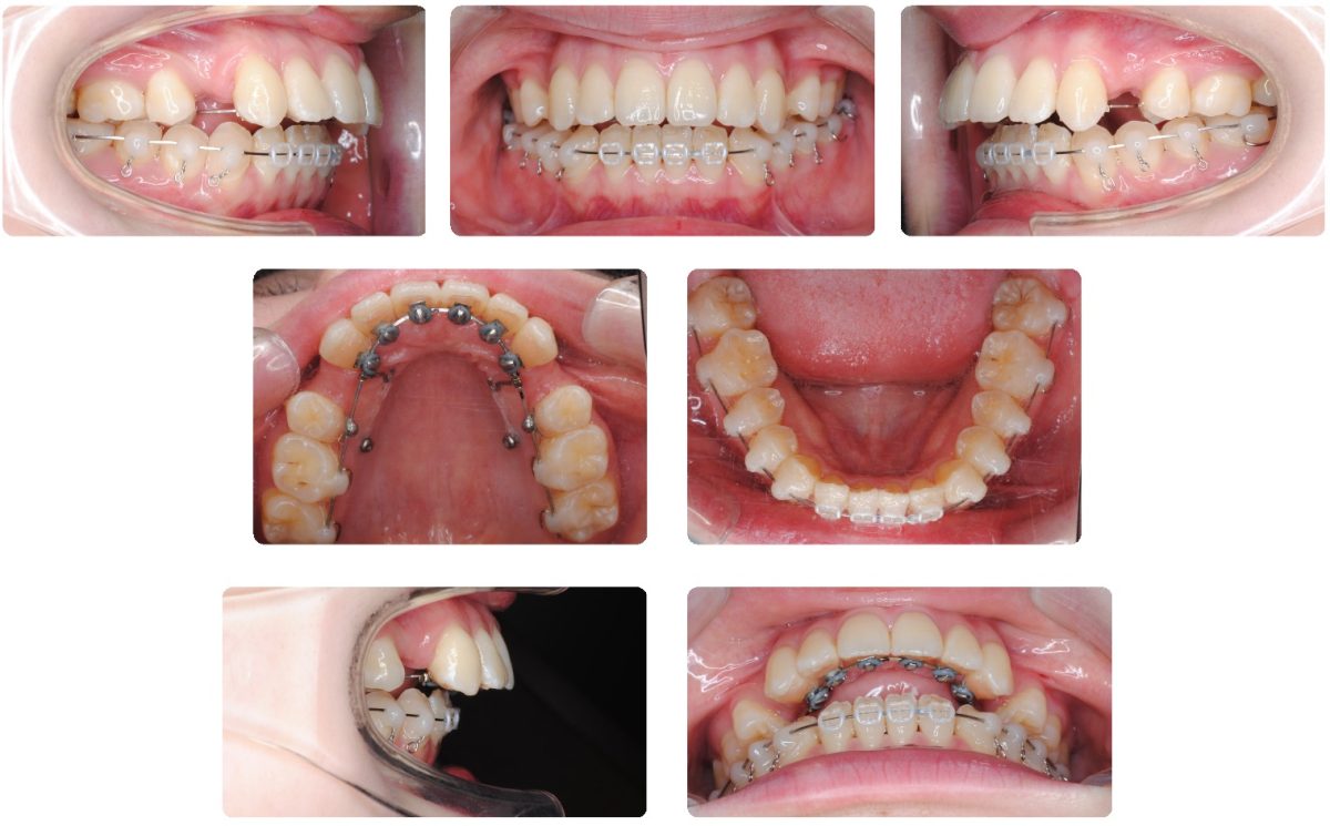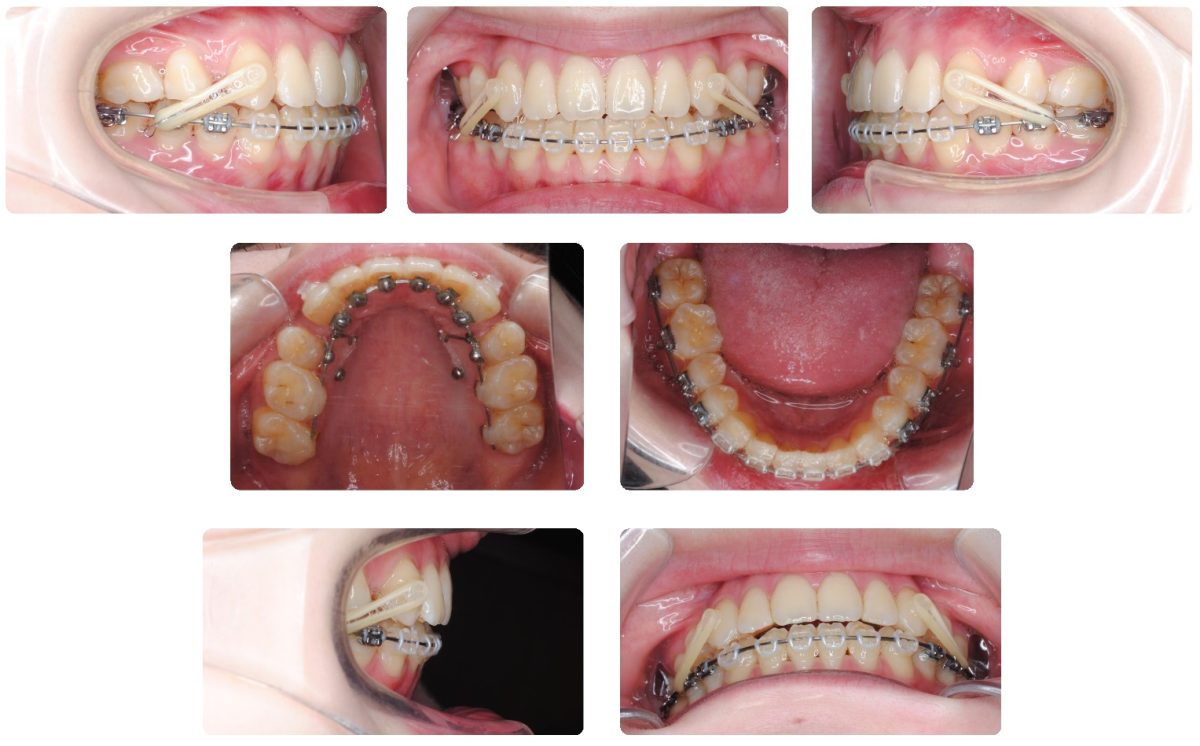 治療開始から7カ月で上顎前歯を後方に移動開始しました。装置に関しましては上顎を裏側、下顎は表側のハーフリンガルという方法で治療を開始しております。