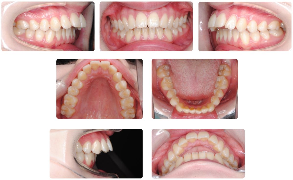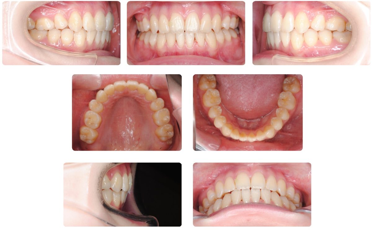 上顎前歯が出ていることと前歯でものが噛めないことで来院されました。下顎の後退感が若干認められるものの上顎小臼歯抜歯による治療を選択しました。