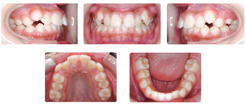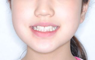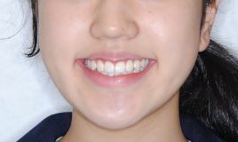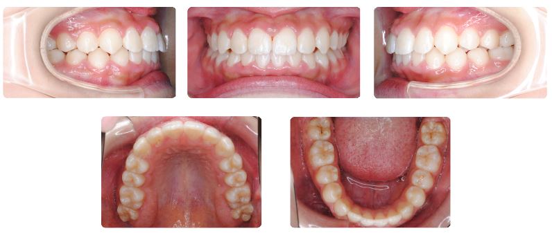 上あごの12才臼歯である第二大臼歯が生えてくるまで時間がかかったこと、上あごの奥行きがやや足りないため生え始めた際に頬側に向かい交叉咬合になってしまい、この噛み合わせの改善のために2年4か月を要しました。