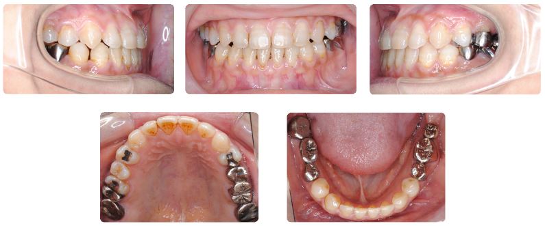 下あご歯列のみで固定式装置で治療をすすめていましたが、前歯が乗り越える際に上下顎前歯の切端が強くぶつかって痛いとのことでしたので、上あごにも固定式装置を装着しました。