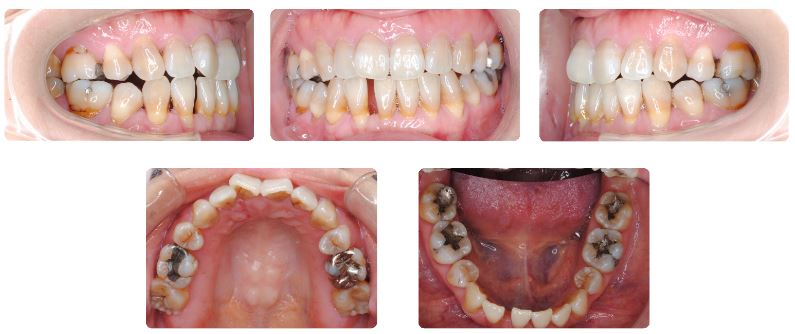 経過年月の割には歯並びの乱れはそれほど大きくはありませんが、歯槽骨や歯肉などを含む歯槽組織の経時的変化により個々の歯の傾斜やスペースが認められる状態です。