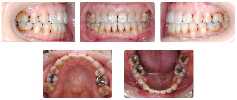 高校生の頃に矯正治療の経験があり、治療半ばでワイヤーによる固定式装置を外してから今日までそのままにしていたとのことです。