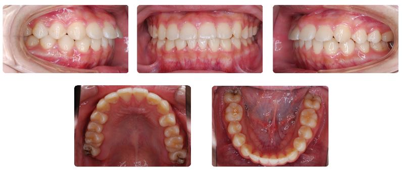 永久歯列になったのちにワイヤーの固定式矯正装置を上下あごともに装着しています。