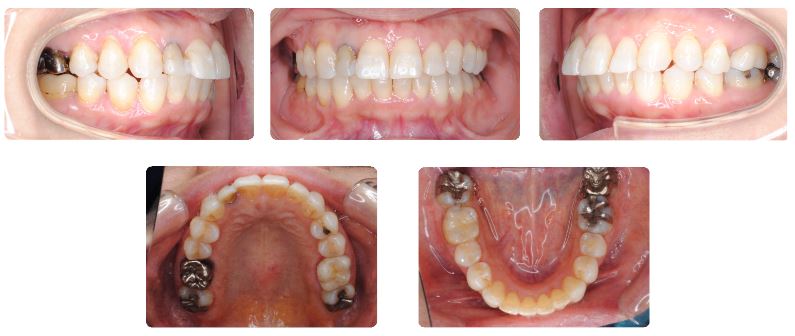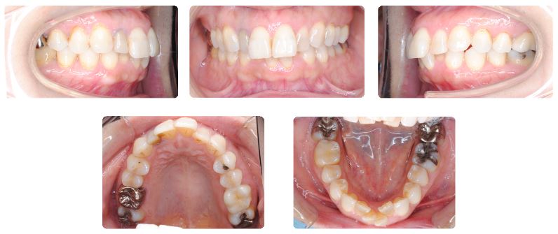 上下あごの歯列弓幅が狭いため歯列弓を拡大しながら、非抜歯でワイヤーでの唇側の固定式矯正装置で治療を進めることにしました。