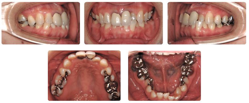 前歯のセラミックの人工歯がすぐに割れてしまうとのことで前歯の歯並びを治したいとのことで来院されました。