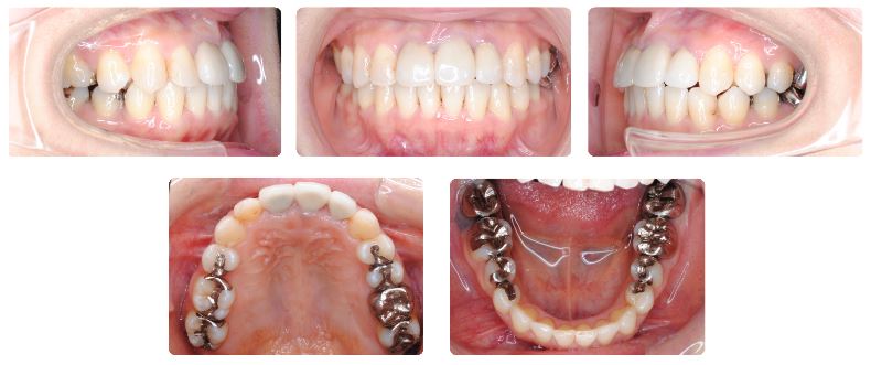 上あごの矯正治療を先行していますが、前歯だけでなく臼歯の噛み合わせがとても深かったため下あごの歯に装置が装着できるようになるまで時間を要しました。
